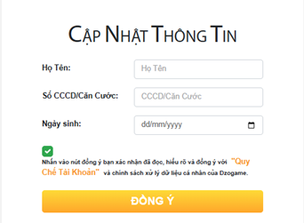 Bạn đảm bảo cung cấp đúng thông tin cá nhân và Dzogame căn cứ vào thông tin này để xác thực chủ tài khoản.